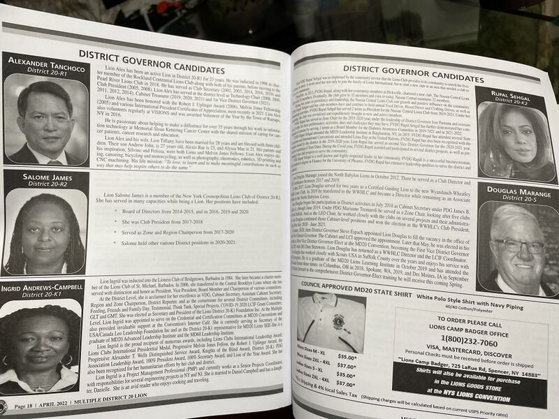 Lion Alex has been an active Lion in District 20-R1 for 23 years. He was inducted in 1998 as charter member of the Rockland Centennial Lions Club along with both of his parents, before moving to the Pearl River Lions Club in 2018. He has served as Club Secretary (2002, 2003, 2014, 2016, 2019) and Club President (2005, 2008). Lion Alex has served at the district level as Technology Chair (2008, 2009. 2011, 2012, 2014), Cabinet Treasurer (2019, 2020, 2021) and 1st Vice District Governor (2021). Lion Alex has been honored with the Robert J. Uplinger Award (2006), Melvin Jones Fellowship (2005) and various International President Certificates of Appreciation, most recently in 2021. Lion Alex also volunteers regularly at VISIONS and was awarded Volunteer of the Year by the Town of Ramapo, NY in 2016. He is passionate about helping to make a difference for over 35 years through his work in information technology at Memorial Sloan Kettering Cancer Center with the shared mission of caring for cancer patients, cancer research and education. Lion Alex and his wife, Lion Tiffany, have been married for 28 years and are blessed with three chil-dren. Their son Andrew John, is 27 years old, Alexis Rae is 23, and Alyssa Mae is 21. His parents and his inspiration, Silvino and Felissa, were both Lions and Melvin Jones Fellows. Lion Alex enjoys ski-ing, canocing, bicycling and motorcycling, as well as photography, cleetronics, robotics, 3D printing and CNC machining. His life mission: "To love, to learn and to make meaningful contributions in such as way that may help inspire others to do the same"