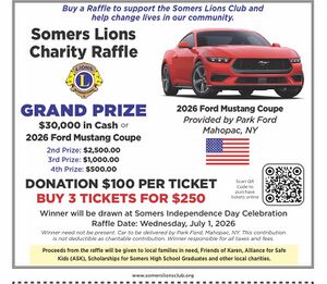 Join us for the ultimate celebration! The winning tickets will be drawn at the Somers Independence Day Celebration on Wednesday, July 1, 2026.